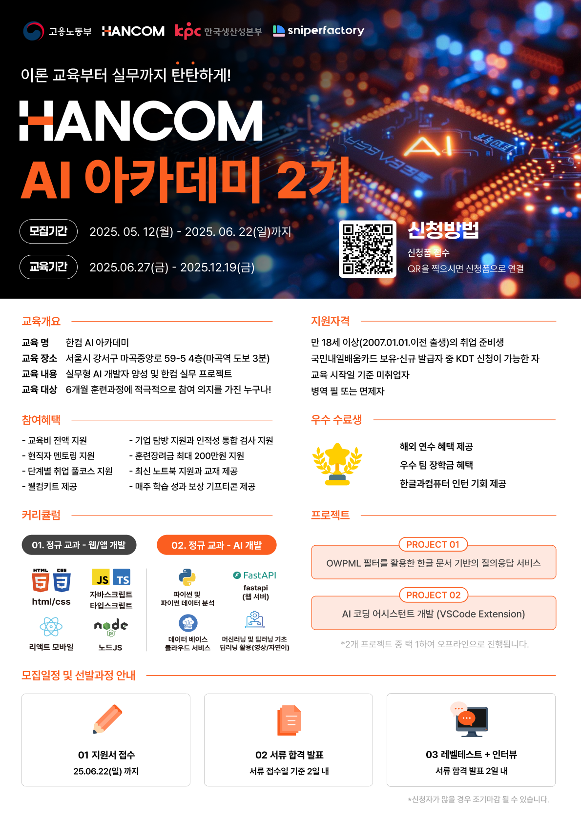 - [고용노동부X한컴X스팩스페이스] 한컴 AI 아카데미 과정 2기 참여자 모집