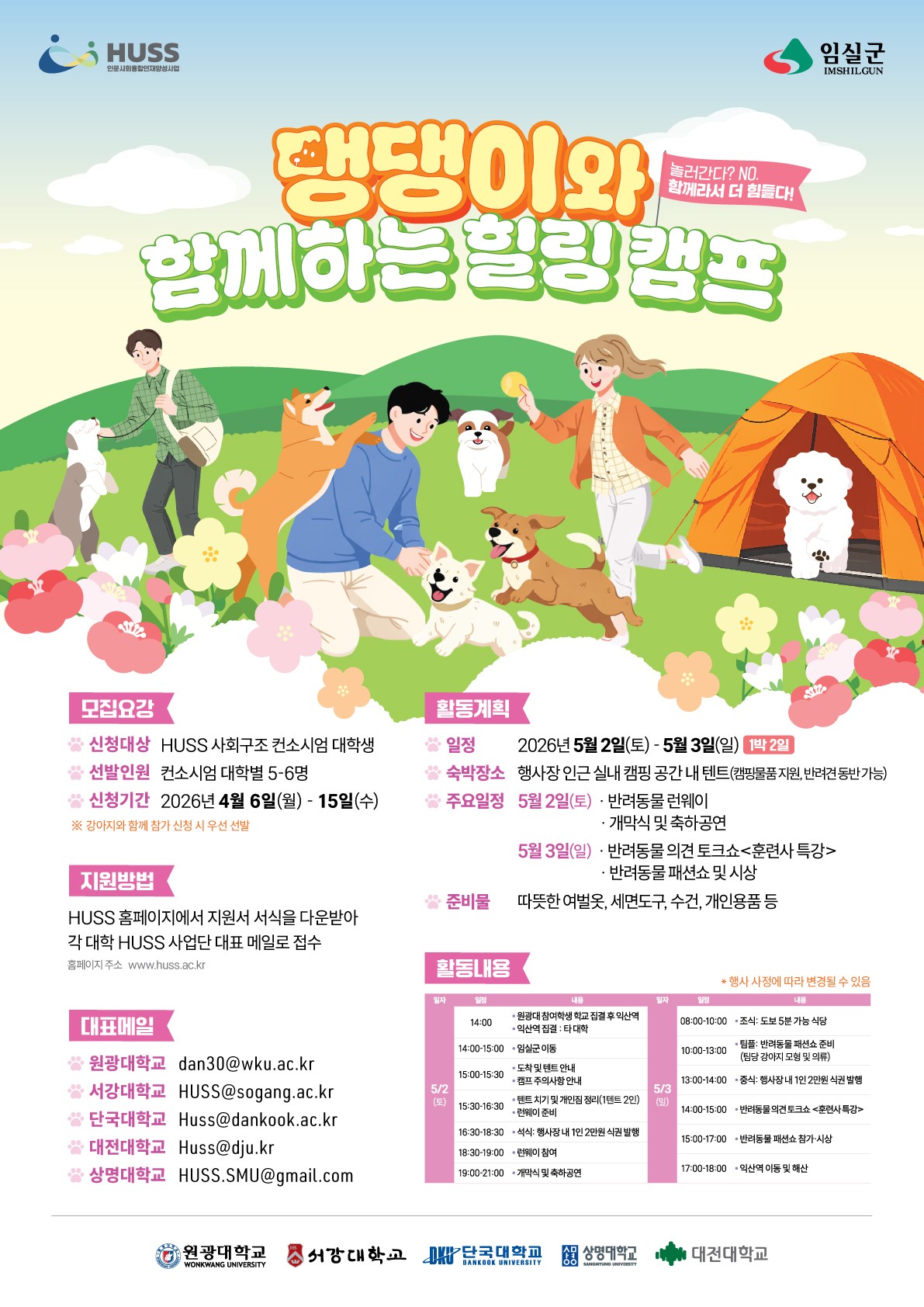 HUSS 비교과 프로그램 ‘댕댕이와 함께하는 힐링 캠프’ 학생 모집